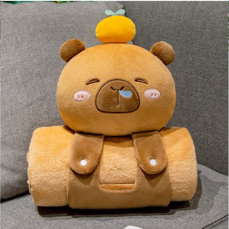Mięciutki koc z poduszką KAPIBARA XL Flanela 100*170cm GRUBY MIĘKKI NARZUTA KOC20