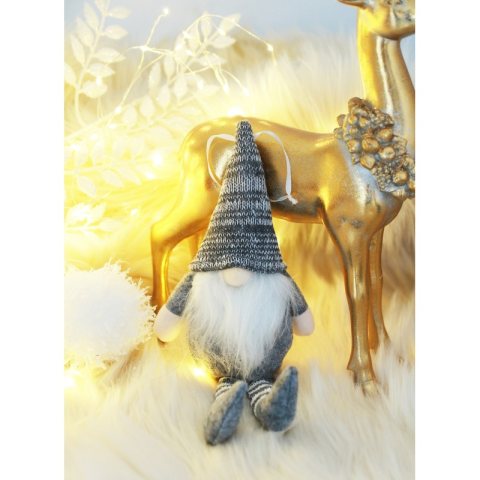UROCZY SIEDZĄCY MIKOŁAJ SKRZAT KRASNAL Specyfikacja: – Siedzący krasnal – Wypełniony pluszem Wymiary: Wysokość : 18 cm + 12 cm nogi Szerokość: 7 cm