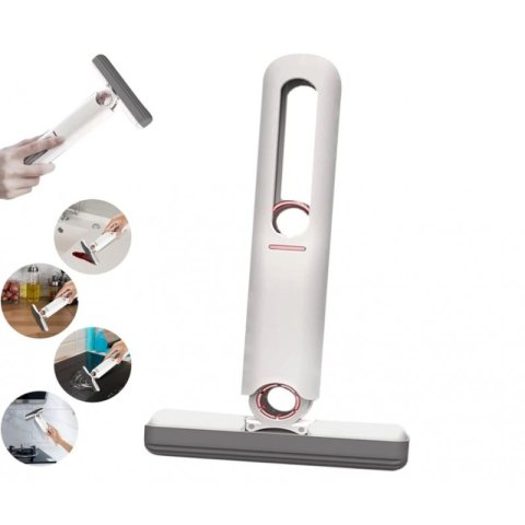 Super chłonny mini mop z wyciskaczem Innowacyjny składany mop to funkcjonalne urządzenie, które szybko i skutecznie usunie drobne plamy i zabrudzenia. Gąbka skutecznie wchłania płyny takie jak woda, soki i napoje. OBRÓT O 180 STOPNI Mop posiada ruchomą szczotkę, która obraca się w lewo i w prawo, dzięki czemu z łatwością dotrze do trudno dostępnych miejsc. Wymiary: na zdjęciu. Wymiary opakowania: 25,5 x 6,5 x 5 cm Waga: 180g.