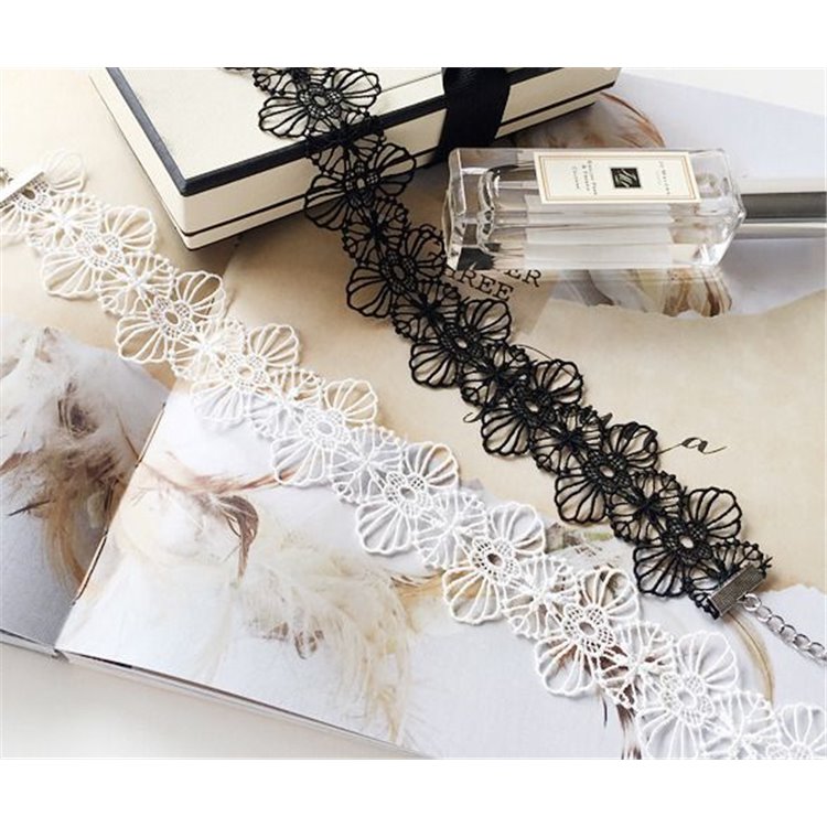 NASZYJNIK CHOKER KORONKA BIAŁY N302B