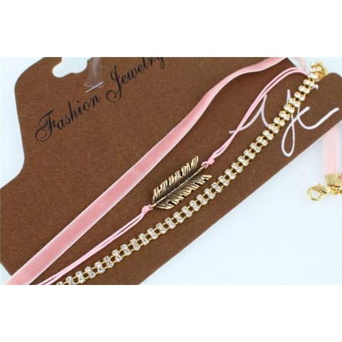 NASZYJNIK CHOKER PIÓRKO I KRYSZTAŁY – RÓŻ N521R