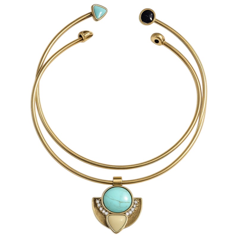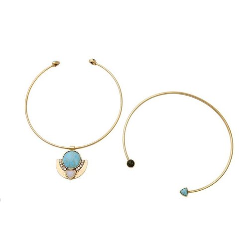 NASZYJNIK KOLIA PODWÓJNA OBRĘCZ BLUE STONE N229