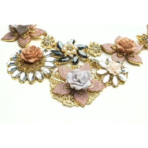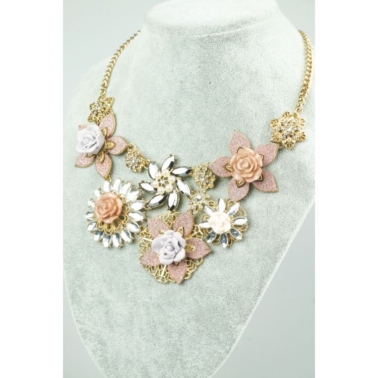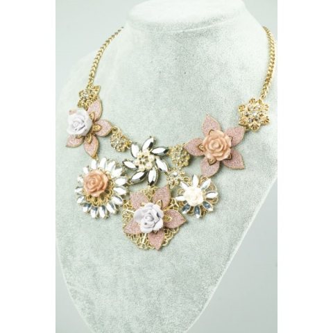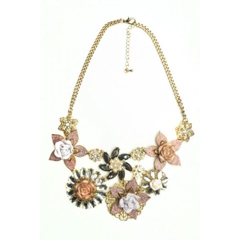 Charakterystyczny naszyjnik w formie kolii z kamieni. Bardzo efektowny, wykonany z antyalergicznych materiałów z dbałością o najmniejsze detale.Świetnie pasuje do eleganckich, jak również do codziennych stylizacji. Założony do białego T-shirtu ożywi Twój strój. Naszyjnik prezentuje się rewelacyjnie! Wykonany jest ze stopów metali nieszlachetnych.Nie są odporne na wodę.Nie zawiera niklu ani chromu.Wymiary:długość całkowita 53 cm (z regulacją)regulacja 8 cmdługość elementu ozdobnego 9 cm (w najdłuższym miejscu)