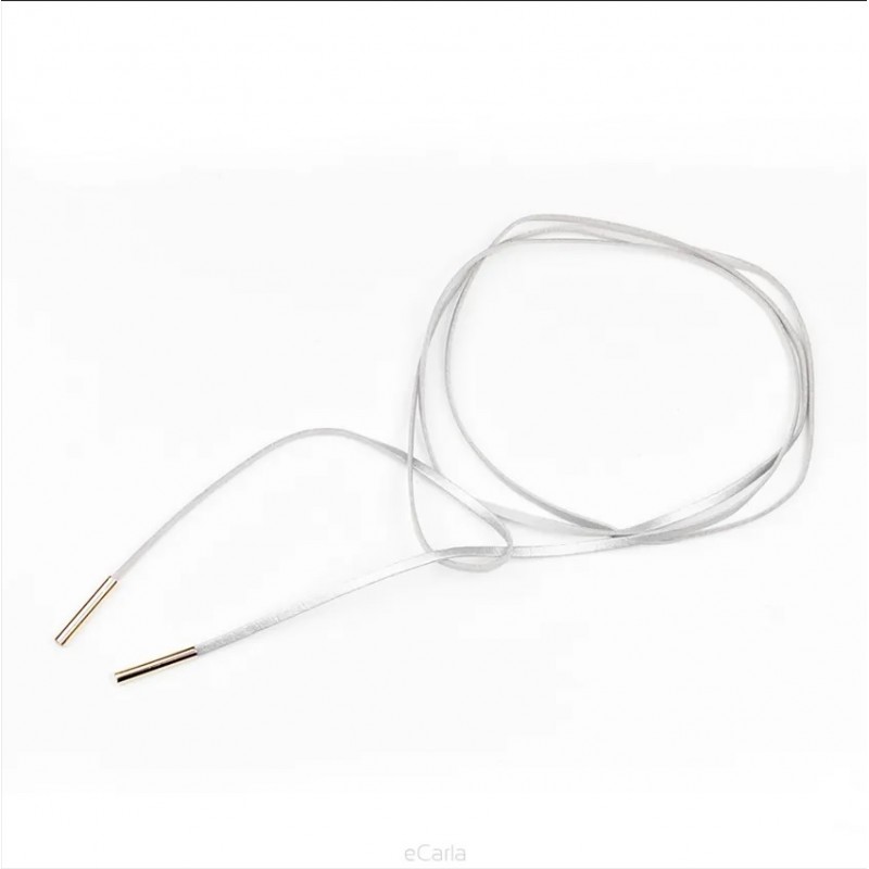 Naszyjnik tasiemka z końcówką w kolorze złotym. Różne kolory do wyboru. HIT SEZONU!Klasyczne i proste wzornictwo naszyjnika idealnie podkreśli naturalne piękno i klasę kobiety.Świetnie pasuje do eleganckich, jak również do codziennych stylizacji. Naszyjnik prezentuje się rewelacyjnie!Wykonany jest ze stopów metali nieszlachetnych. Nie są odporne na wodę.Nie zawiera niklu ani chromu. Wymiary:długość całkowita 165 cmdługość złotych elementów 3 cm