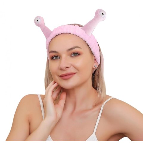 Opaska kosmetyczna do włosów ślimak, różowa pluszowa 20x5cm OPK22R