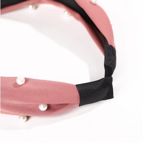 Opaska turban z materiału gruba ciemny róż perełki O227CR