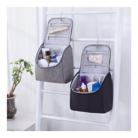 Organizer na kosmetyki / kosmetyczka podróżna Modny dodatek na podróż – rozkładana kosmetyczka! Wykonana z miękkiego, śliskiego materiału. Bardzo praktyczna i uniwersalna – nadaje się zarówno dla kobiet, jak i mężczyzn. Kosmetyczka w sam raz na dłuższe podróże czy wyjazdy – jest bardzo poręczna i pojemna, pomieści wszystkie niezbędne rzeczy. W środku wydzielona jest główna komora oraz dwie dodatkowe kieszonki zasuwana na zamek na wewnętrznej klapie kosmetyczki. Idealna, by pomieścić w nich wszystkie kosmetyki lub inne akcesoria. Kosmetyczka jest bardzo pojemna. Wymiary: Wymiary przed rozłożeniem : 21 cm x 21 x 11,5 cm Wymiary po rozłożeniu : 38 cm x 21 cm Dzięki zamocowanemu haczykowi u góry można ją podwiesić.