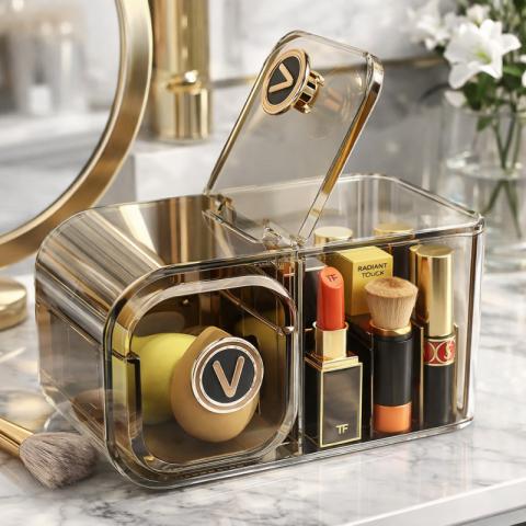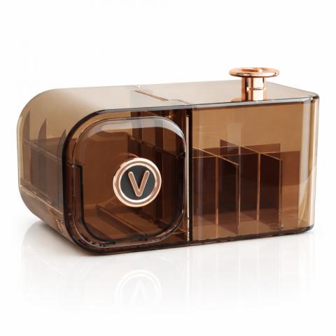 Organizer na kosmetyki szafeczka z przegródkami i szufladką, brązowy CB36