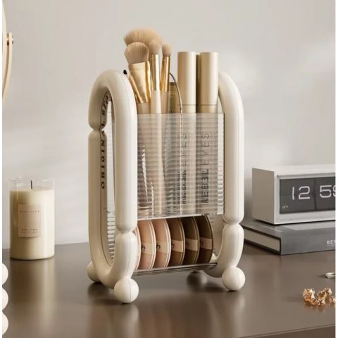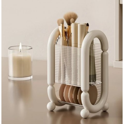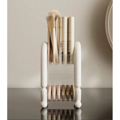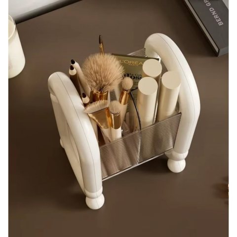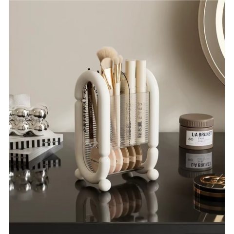 Organizer na pędzle i kosmetyki Jest wyjątkowo elegancki i będzie służył również jako dekoracja pomieszczenia. Pozwoli zachować ład i porządek w kosmetykach, czy podręcznych drobiazgach. Idealne pojemniki do łazienki, garderoby czy sypialni Organizer przeznaczony do przechowywania pędzli, kosmetyków Wymiary: 20cm x 12cm x 10cm Wymiary opakowania: 21,5cm x 13cm x 10,5cm Waga: 283g netto / 350g brutto Materiał: Tworzywo sztuczne