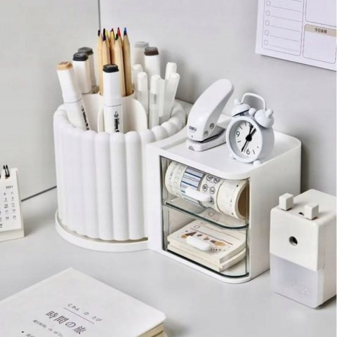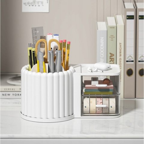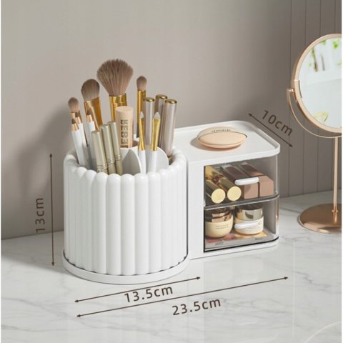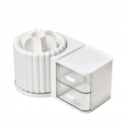 Organizer na przybory, kosmetyki, ryflowany obrotowy biały CB58