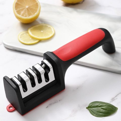 Ostrzałka do noży kuchennych i nożyczek, trójfazowa osełka czaro-czerwona KU01