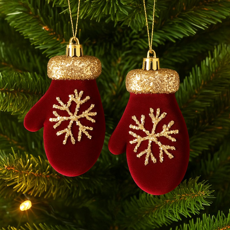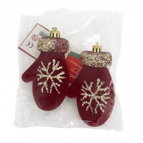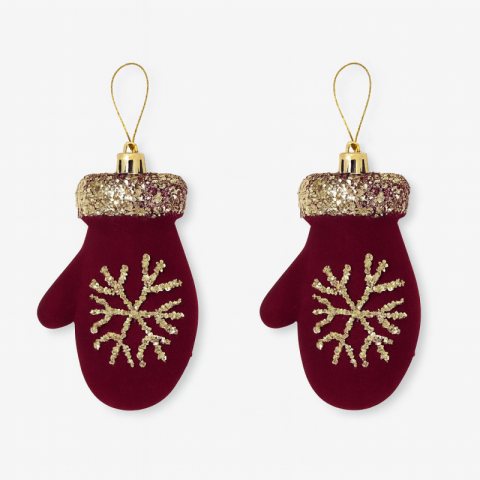 Ozdoba świąteczna bordowe rękawiczki welurowe 2szt WOZ60