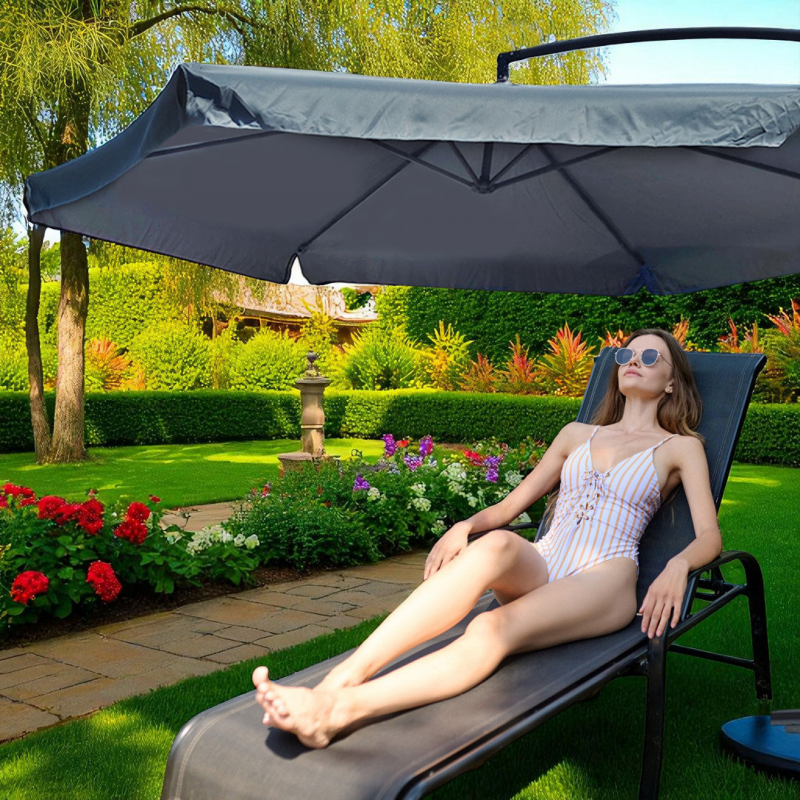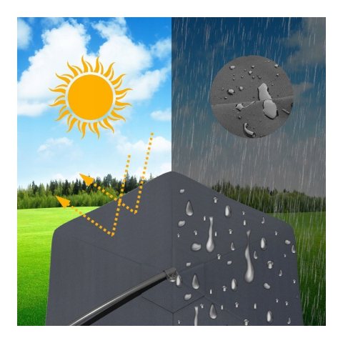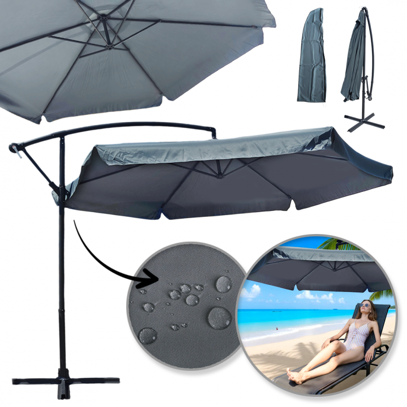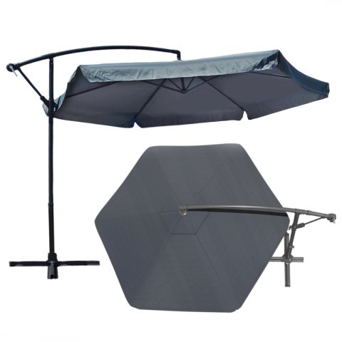 Parasol ogrodowy z wysięgnikiemParasol ogrodowy to idealny wybór dla osób poszukujących niezawodnej ochrony przed słońcem!Zaprojektowany z myślą o maksymalnej funkcjonalności i wygodzie. Zapewnia nie tylko cień, ale i ochronę przed szkodliwym promieniowaniem UV. Specyfikacja:- Poszycie parasola zapewnia odporność na m.in. przed wiatrem, deszczem i słońcem (filtr UV50+). Materiał jest wodoodporny.- Parasol posiada bardzo nowoczesny system regulacji wysokości i kąta nachylenia czaszy. – Solidny stelaż oraz 8 mocnych żeberek. Jakościowe wykonanie sprawia, że parasol znakomicie sprawdza się nawet przy niekorzystnych warunkach pogodowych.- Produkt jest składany, sposób rozkładania: korba.Materiał:- Materiał poszycia: 100% poliester, gramatura 180 gr/m2- Materiał stelaża: stalBudowa:- 6 stalowych żeberek 12 x 18mm- Stalowa kolumna 48 mm- Podstawa: krzyżowaWymiary i waga:- Średnica czaszy: 300 cm- Wysokość: 262 cm- Szkielet: żeberka: 12×18 mm, kolumna o średnicy 48 mmWaga: 15 kgWymiary opakowania:198cm x 32cm x 15cm