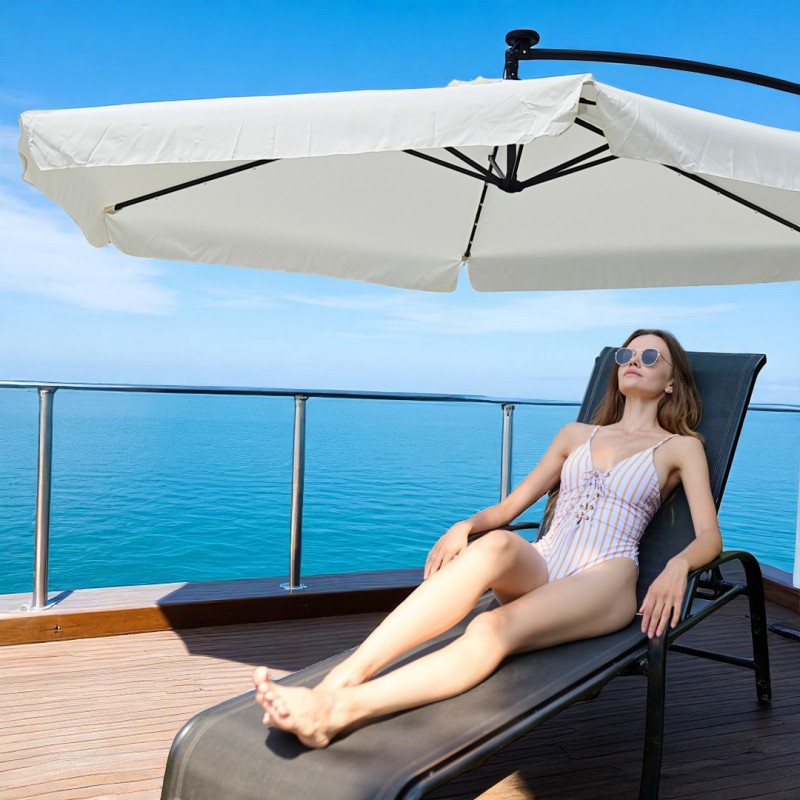 Parasol ogrodowy z wysięgnikiem i falbanką, kremowy 3,5 m. OGP10