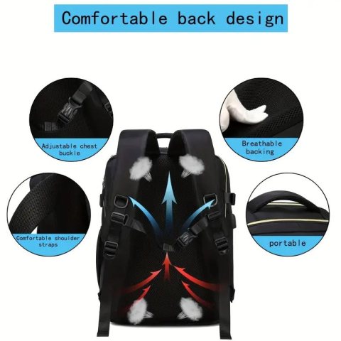 Uniwersalny plecak podróżny, sportowy, szkolny Wykonany z wodoodpornego materiału sprawdzi się świetnie zarówno jako plecak do samolotu, uprawiania sportu jak i do szkoły. Plecak o wymiarach 42x28x21cm jest akceptowany jako bagaż podręczny przez większość linii lotniczych. Jest bardzo pojemny i praktyczny. Pomieści wszystkie potrzebne rzeczy jak i sprzęt elektroniczny: komputer, tablet, telefon etc. Specyfikacja: -wodoodporny materiał – przewiewny, szybkoschnący materiał na plecach i rączkach -2 główne komory plecaka + 2 zewnętrzne kieszonki – 4 wewnętrzne kieszonki – specjalna kieszeń na buty od spodu plecaka Materiał: 100 % oxford wodoodporny Podszewka – 100% poliester Wymiary: 42 x 28 x 21cm Wymiary opakowania: 50cm x 36cm x 8cm Waga: 660g netto