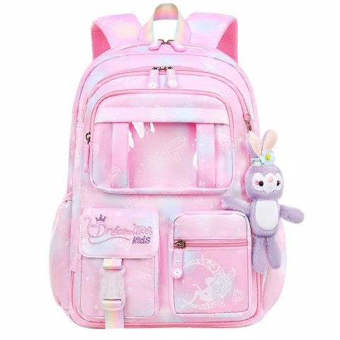 Wodoodporny dziecięcy plecak, szkolny z maskotką Jest bardzo pojemny i praktyczny. Pomieści wszystkie potrzebne rzeczy jak i sprzęt elektroniczny: komputer, tablet, telefon etc. Duża pojemność i przestrzeń do przechowywania, plecak dla dziewcząt, może sprostać różnym potrzebom do szkoły, biura, w podróży. Specyfikacja: – Dwie główne komory pomieszczą książki o standardowych rozmiarach; – Trzy przednie kieszenie są idealne na przybory szkolne, przekąski lub inne małe przedmioty; – Dwie boczne kieszenie mogą dobrze sprawdzić się w trzymaniu butelek z wodą i składanych parasoli; – Tkanina nylonowa, trwała, wodoodporna, odporna na zużycie i rozdarcie, lekka, łatwa do czyszczenia; – Oddychający tylny panel, poszerzone i pogrubione regulowane paski zapewniają wygodę i suchość pleców; – Duża pojemność: 35 litrów Wymiary: 45 cm x 32 cm x 17 cm Waga: 770g Materiał: 100 % oxford Podszewka – 100% poliester