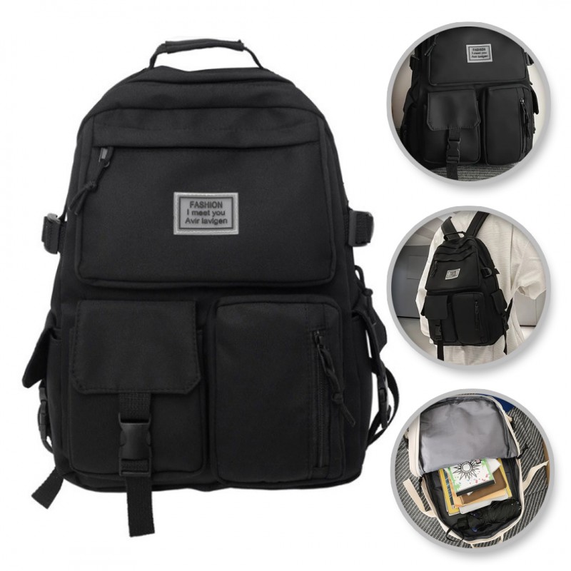 Plecak sportowy szkolny uniwersalny kieszonki czarny PL164CZ