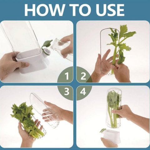 POJEMNIK NA ŚWIEŻE WARZYWA, ZIOŁA DO LODÓWKI Pojemnik ma dobrą wodoszczelność, pomaga utrzymać odpowiednią wilgotność ziół i warzyw przedłużając ich świeżość. Sposób użycia: Opłucz i wysusz wybrane zioła (np. bazylię, miętę, szczypiorek itp.) i umieść je w kapsułce do przechowywania ziół. Zamknij pokrywę, aż usłyszysz kliknięcie. Dodaj świeżą wodę do zbiornika przez zdejmowany korek wlewu. Upewnij się, że korzenia są zanurzone w wodzie, aby uzyskać maksymalną skuteczność Uwaga: Aby uzyskać najlepsze rezultaty, pamiętaj o wymianie świeżej wody co 3-5 dni. Specyfikacja: – Idealny pojemniki do każdej lodówki -Pojemnik wielokrotnego użycia -Kolor: Biały/ przeźroczysty – Materiał: tworzywo sztuczne. – Zapakowany w kartonowe pudełko Wymiary: Wysokość: 27cm Szerokość podstawy: 13cm Szerokość pojemnika: 10cm Głębokość pojemnika: 4,5cm Wymiary opakowania: 27cm x 16cm x 7,3cm Waga: 301g netto / 377g brutto