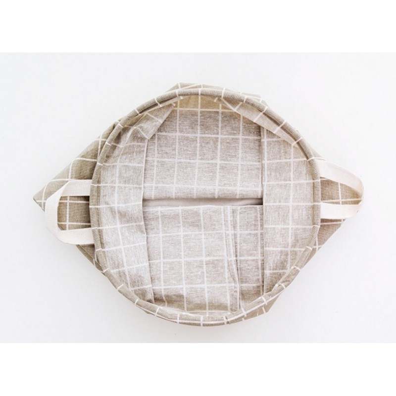 Praktyczny dodatek do pokoju lub łazienki. Worek, organizer na zabawki, pranie lub inne produkty. Połączenie stylu skandynawskiego z praktycznością. Posiada praktyczne rączki do przenoszenia pojemnika z miejsca na miejsce. Skład: Brezent bawełniany – sztywny materiałWymiary:szerokość 35 cm wysokość 45 cm