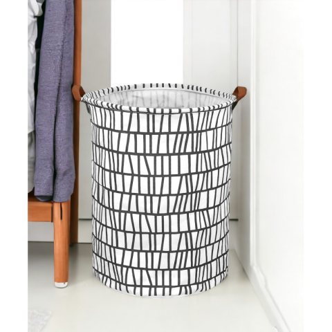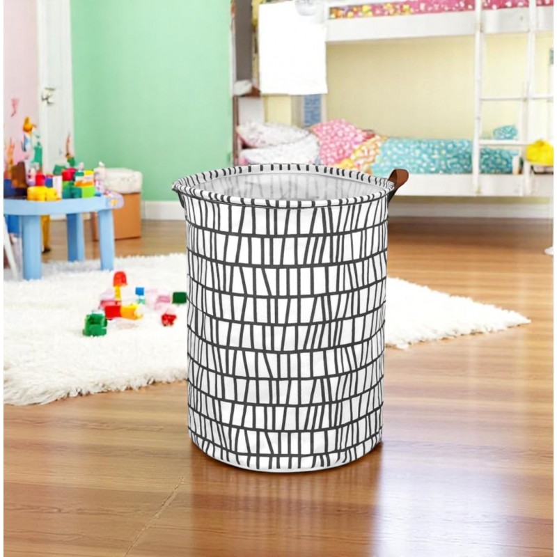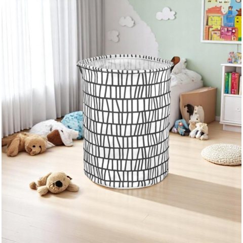 Praktyczny dodatek do pokoju lub łazienki. Worek, organizer na zabawki, pranie lub inne produkty. Połączenie stylu skandynawskiego z praktycznością. Posiada praktyczne rączki do przenoszenia pojemnika z miejsca na miejsce. Skład: Brezent bawełniany – sztywny materiałWymiary:szerokość 35 cm wysokość 45 cm