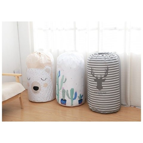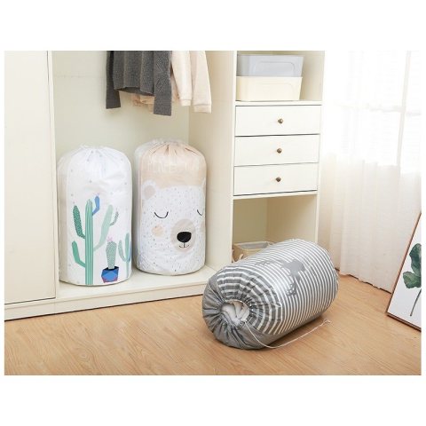Organizer na zabawki Bardzo popularny i praktyczny produkt do wyposażenia pokoju lub łazienki. Worek, organizer na zabawki, pranie lub inne produkty. Połączenie stylu skandynawskiego z praktycznością. Worek zakończony ściągaczem.Skład: PoliesterWymiary:- Szerokość: 40 cm – Wysokość: 83 cm