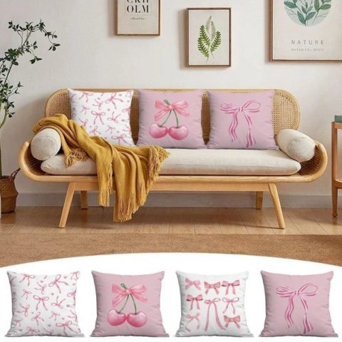 Poszewka na poduszkę 45 x 45 cm biała, KOKARDKI różowe POD228