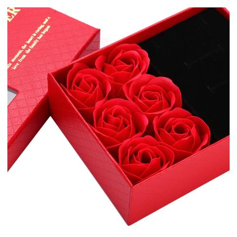 Pudełeczko na biżuterie z 6 szt. zapachowych róż mydlanych, czerwone na prezent BUK28CZE