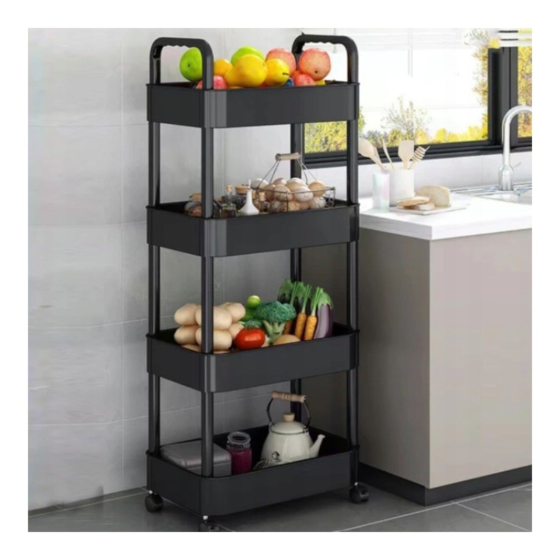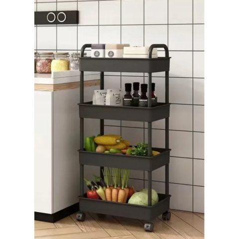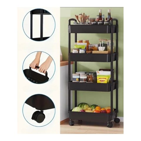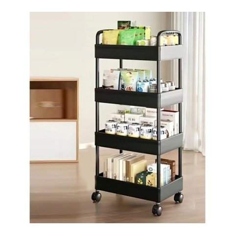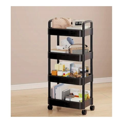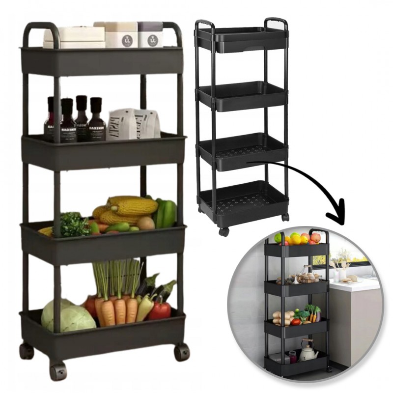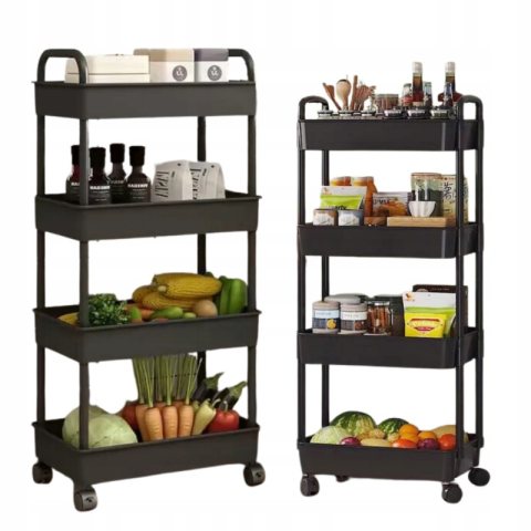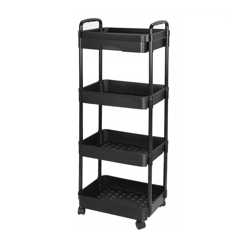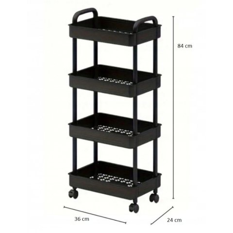 Regał, szafka mobilna na kółkach 4 poziomy czarna 36x24x84cm SZ41