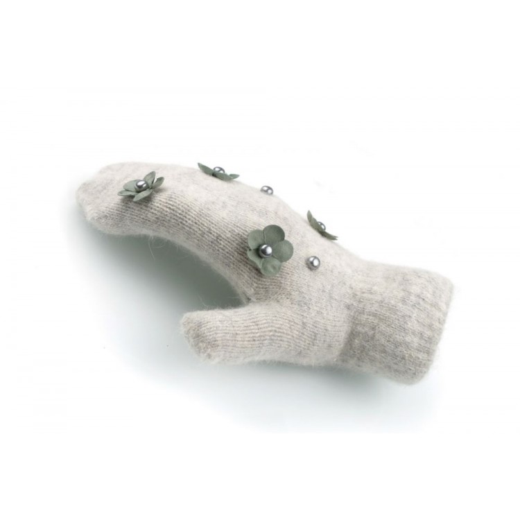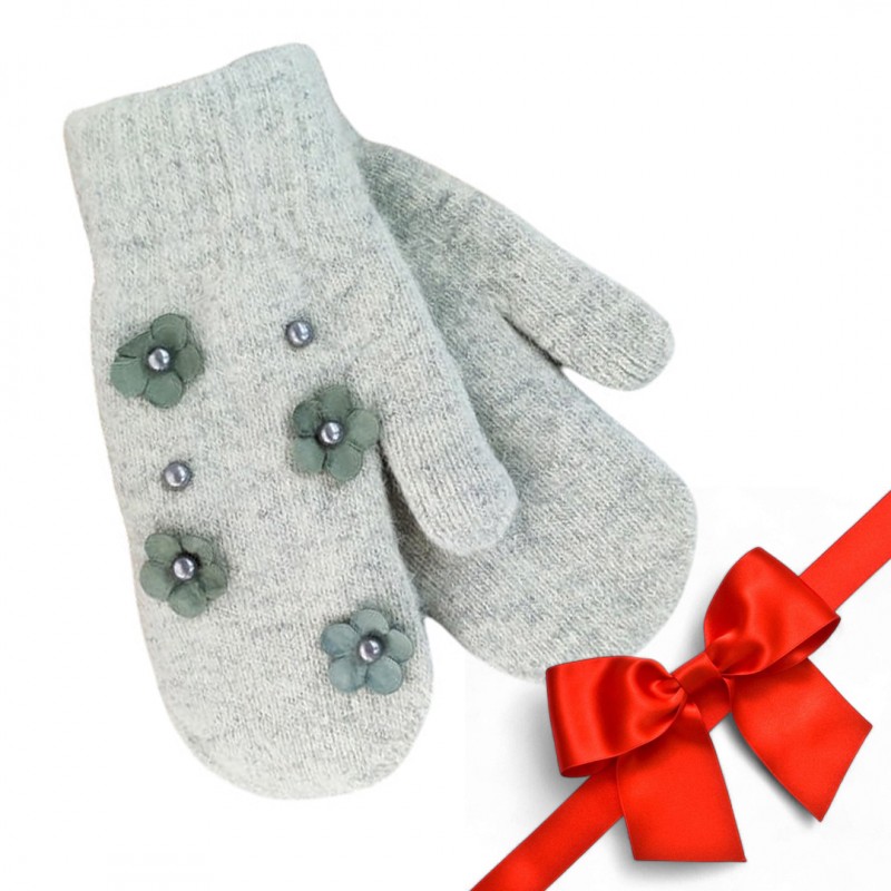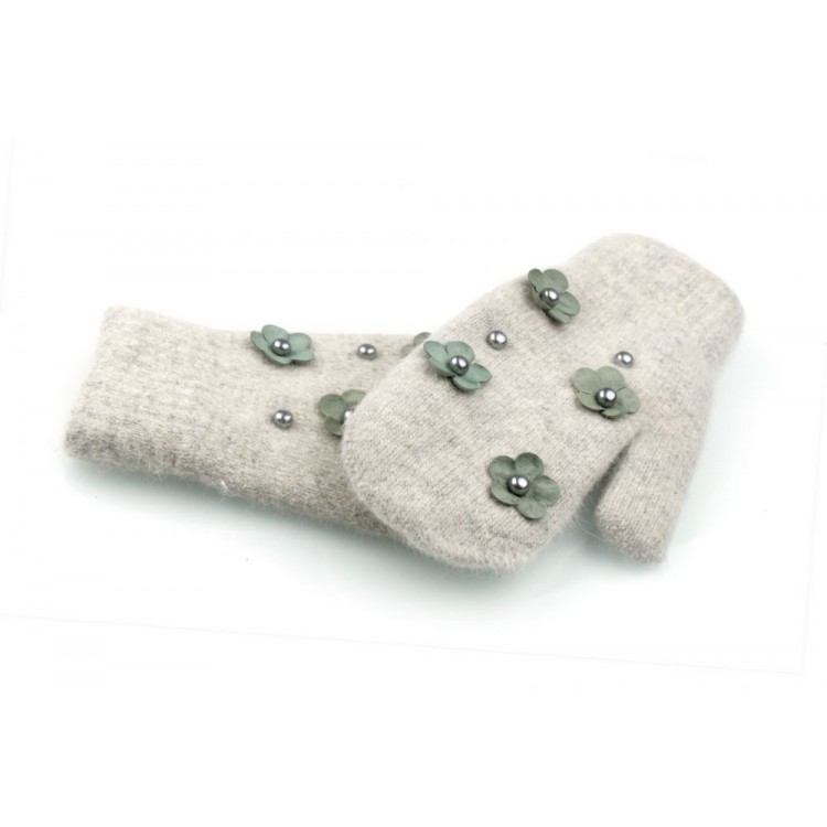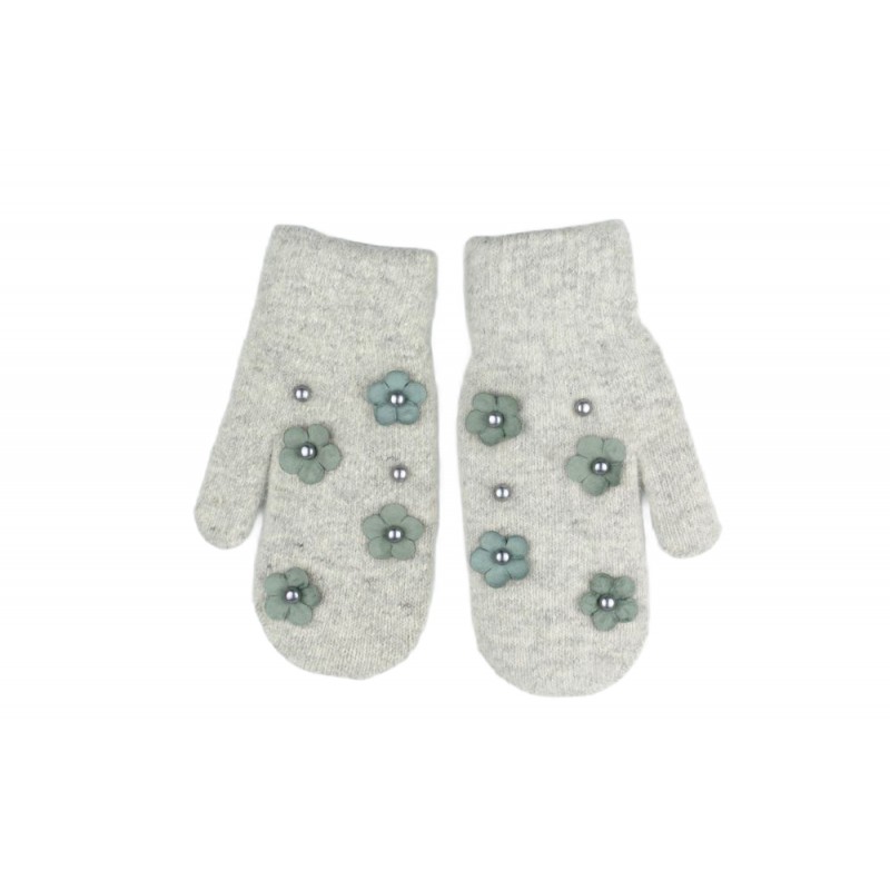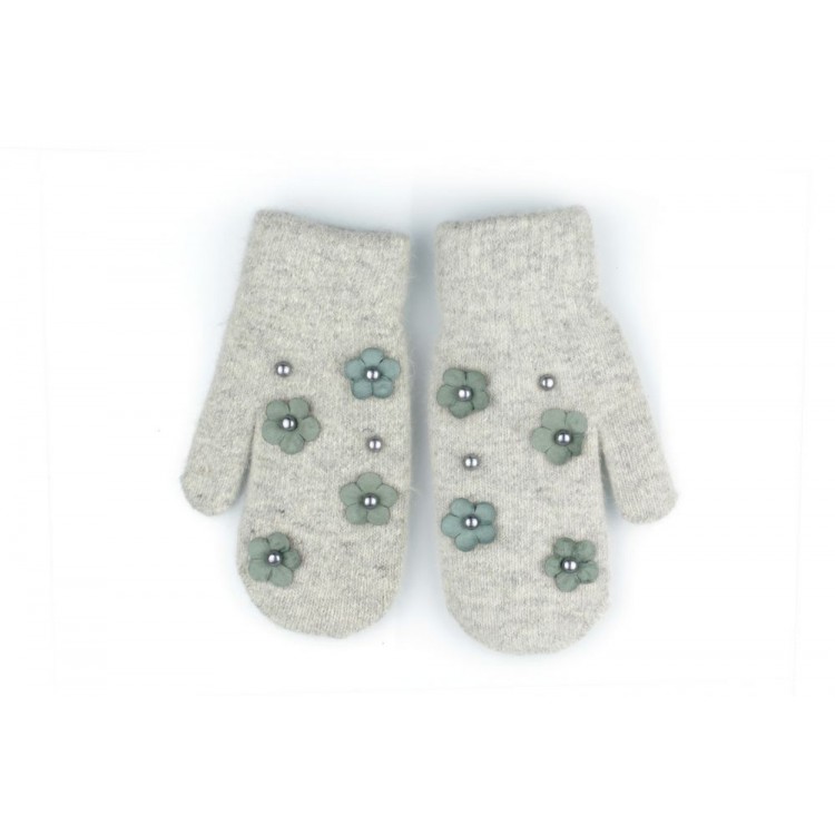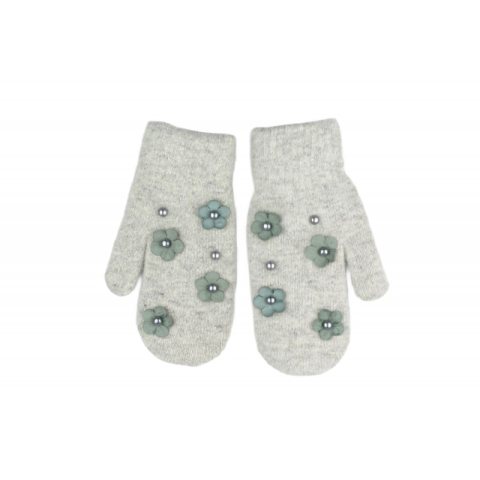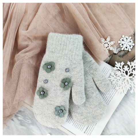 RĘKAWICZKI CUTE KWIATY I PEREŁKI SZARE REK128
