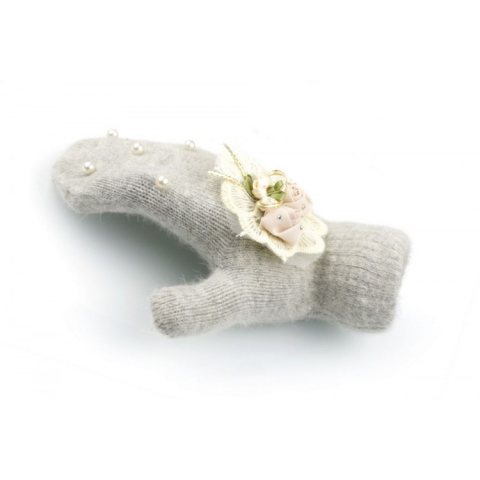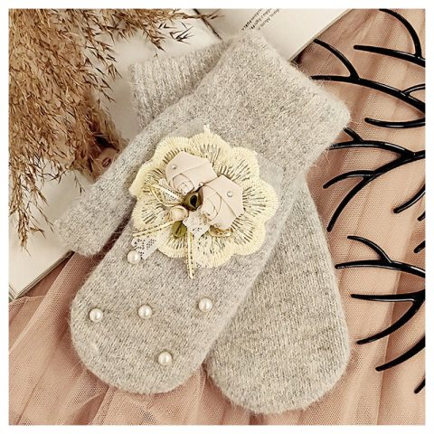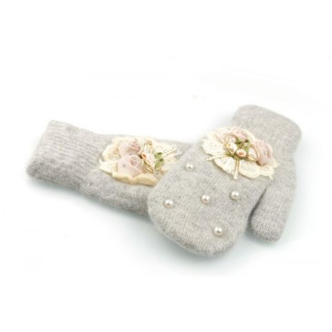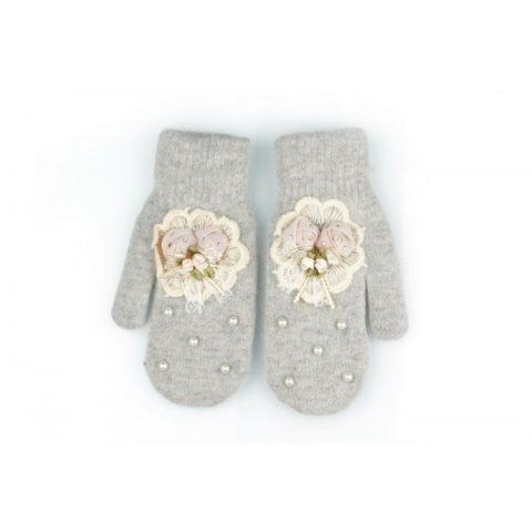 RĘKAWICZKI jednopalczaste CUTE KWIATY I PEREŁKI SZARE REK131
