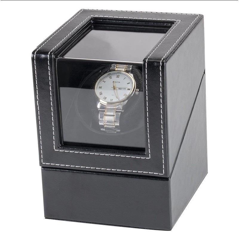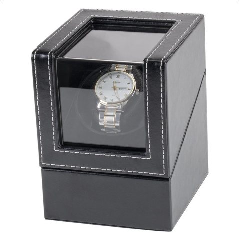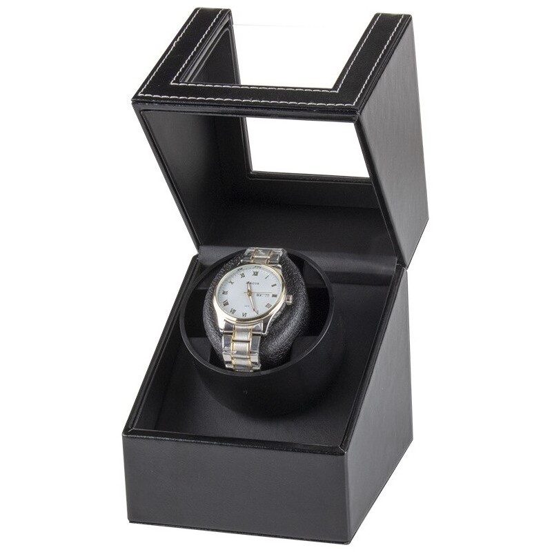 Elegancki Rotomat na zegarek mechaniczny z automatycznym naciągiem Wystarczy uruchomić rotator aby obracał zegarkiem. MODEL B: Cykl obrotów to 2 minuty w jedną stronę, pauza – 6 minut, a następnie 2 minuty w drugą stronę, pauza – 6 minut. Cykle te będą się powtarzać aż do wyłączenia rotomatu. MODEL L: 3 godzinny cykl obrotów 5 minut w lewo, 5 min w prawo. następnie pauza 9 godzin. Cykl powtarzany do momentu wyłączenia rotomatu Cechy produktu: – niewielkie gabaryty – wbudowany, niemal bezgłośny silnik elektryczny – wnętrze wyścielone miękkim materiałem – szybka prezentująca zegarek – eleganckie pokrycie z ekoskóry – w zestawie: kabel USB do podłączenia z komputerem oraz kabelek do połączenia dwóch urządzeń jednocześnie Wymiary: 12 cm x 13 cm x 16 cm