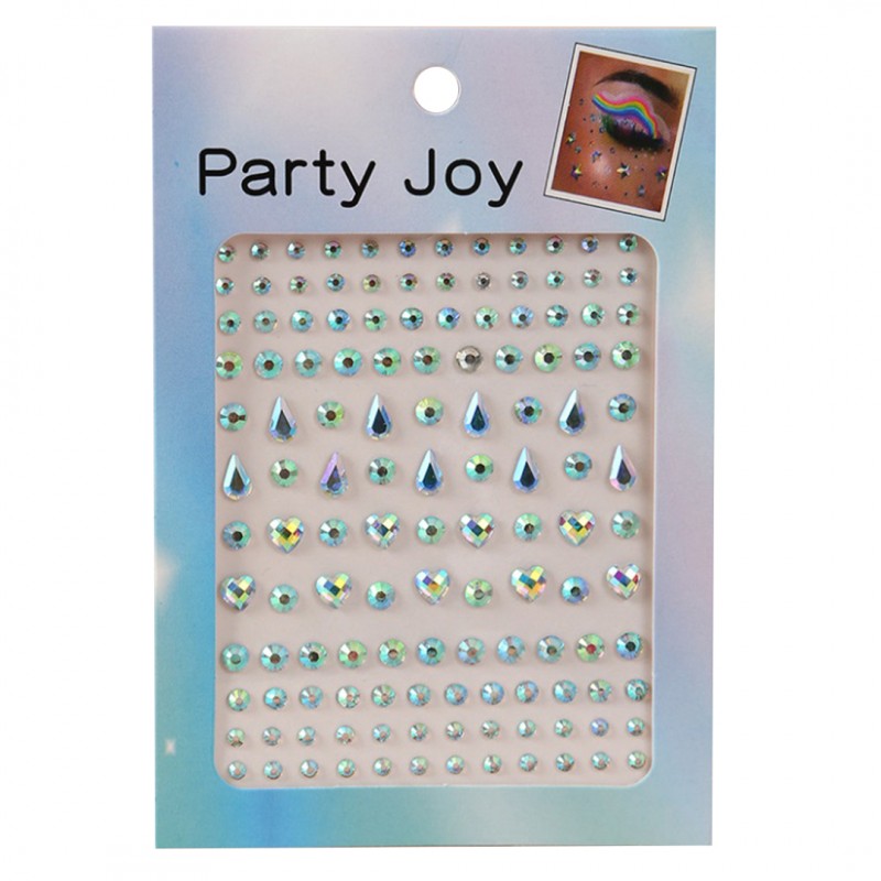 Dekoracyjna biżuteria do ciała i twarzy z kryształkami Mieniące się kryształki i perełki to niezwykle kobiecy dodatek do wielu tematycznych stylizacji. Można je przykleić zarówno na twarz, jak i ciało. Zestaw składa składa się z: – opalizujących okrągłych kryształków o różnej średnicy, – mieniących się kokardek. Sprzedaż dotyczy jednego zestawu (blistra). Instrukcja: 1. Należy dokładnie oczyścić i odtłuścić skórę. 2. Delikatnie odkleić kryształek z kartonika. 3. Przykleić kryształek w wybranym miejscu na ciele.