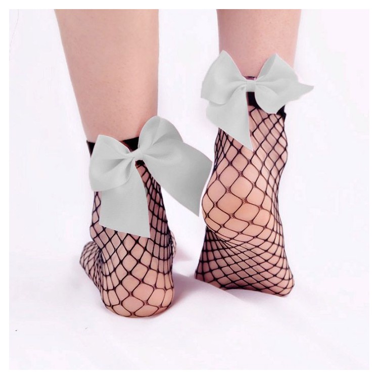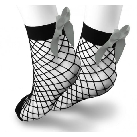 Skarpetki kabaretki z dużymi oczkami i uroczą kokardką z tyłu.Bardzo rozciągliwe, idealnie dopasowujące się do stopy. Rozmiar UniwersalnyKolor czarny z szarąą kokardą