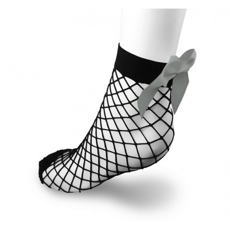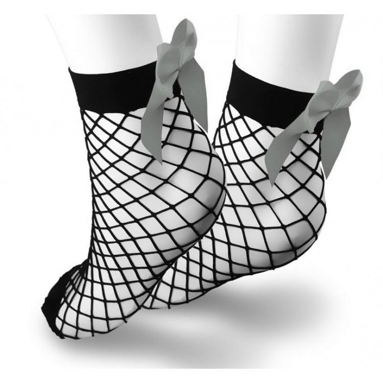Skarpetki kabaretki z kokardą szare SKAR01SZ