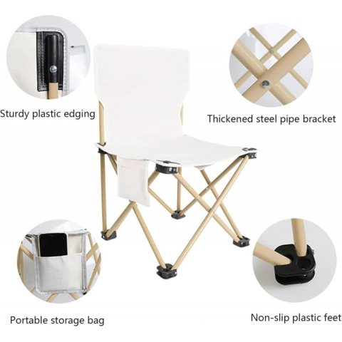 Składane krzesło turystyczne To idealny towarzysz wszystkich zajęć rekreacyjnych na wolnym powietrzu: kemping, wędkarstwo, wakacje na plaży czy w ogrodzie – wystarczy usiąść i cieszyć się spokojem. Krzesło jest łatwe do składania. Wystarczy jeden ruch i możesz cieszyć się wygodnym siedziskiem. Krzesło posiada boczną kieszonkę na wodę lub telefon. Fotel posiada pokrowiec z rączką, dzięki którem zabierzesz go ze sobą w nie jedną wyprawę. Wymiary: – Wysokość całkowita: 72 cm – Wysokość siedziska: 38 cm – Szerokość: 43 cm – Głębokość: 43 cm Maksymalny udźwig krzesła do 130 kg. Przybliżone wymiary krzesła w pokrowcu: Waga krzesła z pokrowcem: