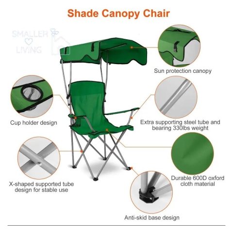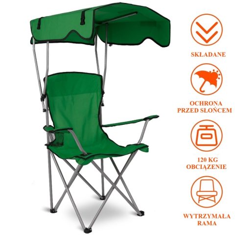Składane krzesło turystyczne, wędkarskie z daszkiem KRT07ZIE