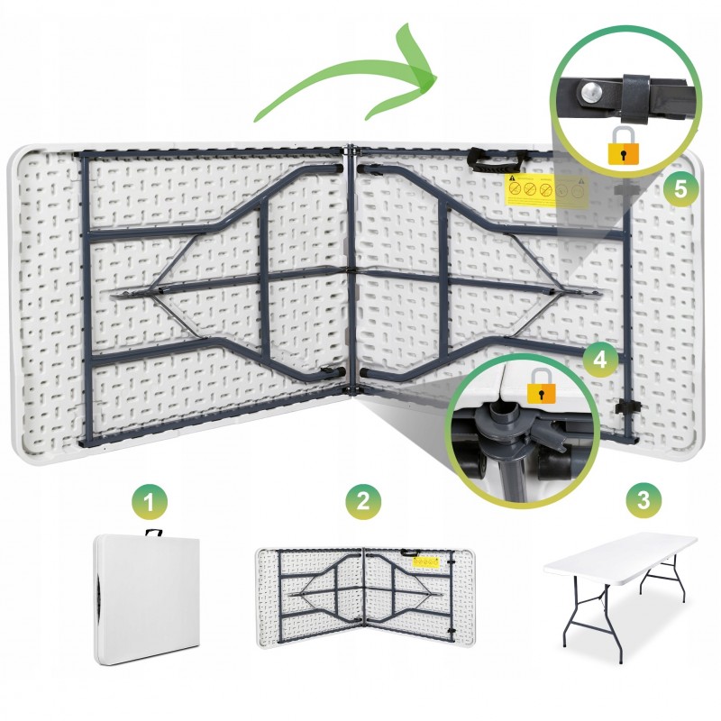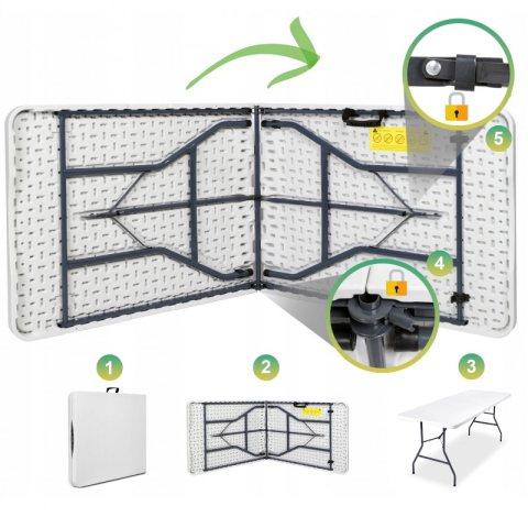 Składany stół cateringowy, turystyczny, do ogrodu 70 x 180 cm biały SC02