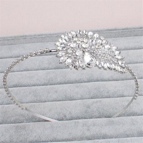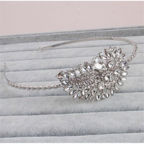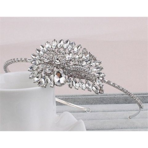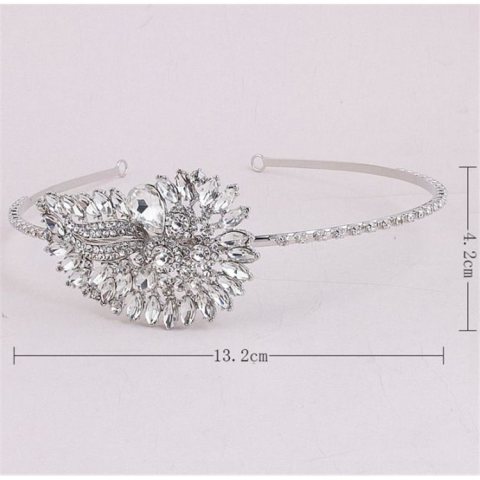 Delikatna opaska na wyjątkową okazję Prosta, ale bardzo efektowna ozdoba do włosów. Niezwykła, ręcznie wykonana opaska ślubna z pięknym zdobieniem. Ozdoba elegancka, lekka i wygodna. Pięknie prezentuje się z welonem a także wspaniale komponuje z każdym rodzajem sukni. Doda niesamowitego blasku i sprawi, że każda Panna Młoda poczuje się niezwykle wyjątkowo i pięknie. Wymiary: Średnica: 12,5 cm Wykonana jest ze stopów metali nieszlachetnych. Nie jest odporna na wodę. Nie zawiera niklu ani chromu.