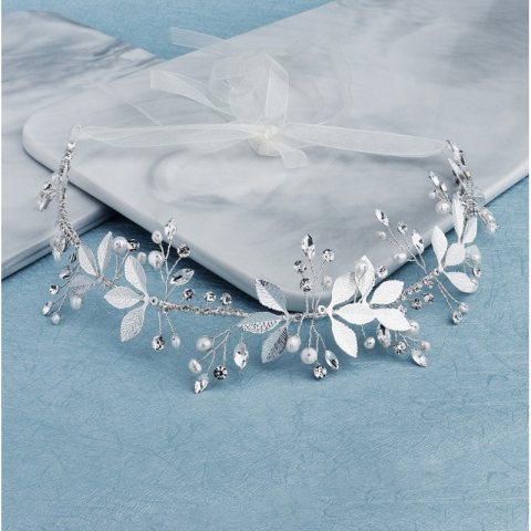 Delikatna opaska na wyjątkową okazję Prosta, ale bardzo efektowna ozdoba do włosów. Niezwykła, ręcznie wykonana opaska ślubna z pięknym zdobieniem. Ozdoba elegancka, lekka i wygodna. Pięknie prezentuje się z welonem a także wspaniale komponuje z każdym rodzajem sukni. Doda niesamowitego blasku i sprawi, że każda Panna Młoda poczuje się niezwykle wyjątkowo i pięknie. Wymiary: długość 34 cm Wykonana jest ze stopów metali nieszlachetnych. Nie jest odporna na wodę. Nie zawiera niklu ani chromu.