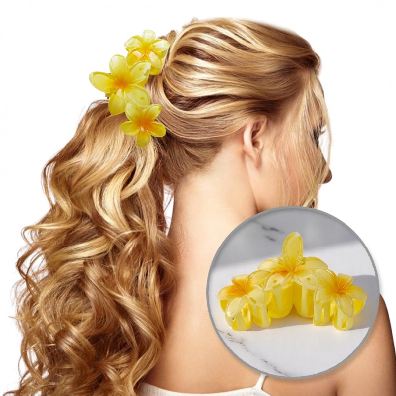 Spinka do włosów klamra duża XL kwiat potrójny żółty 7 x 11cm SP387