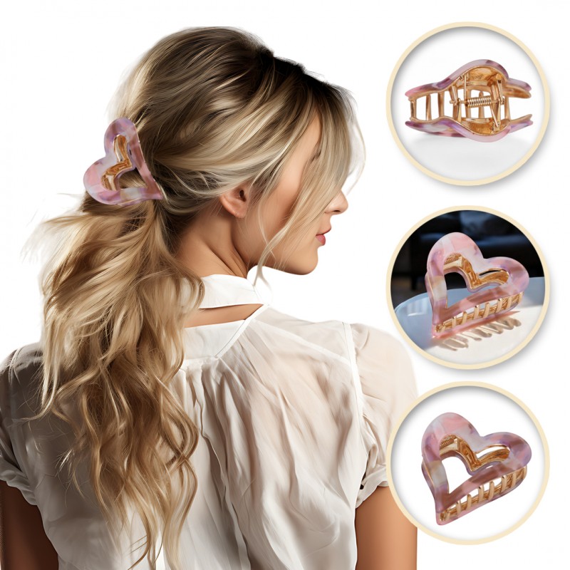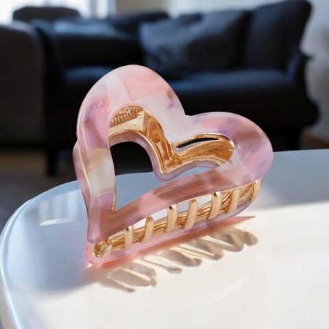 Spinka do włosów, klamra metalowa SERCE panterka kremowa 6cm SP341K