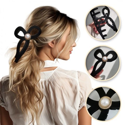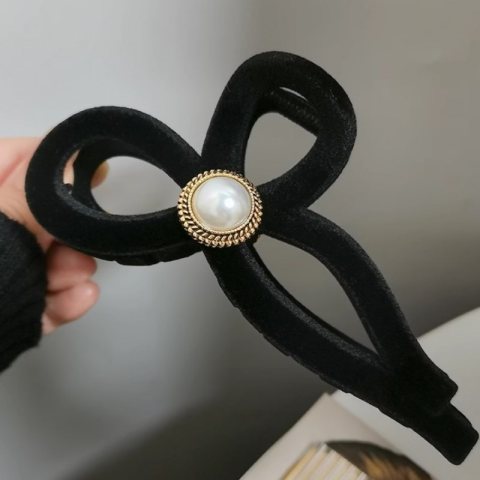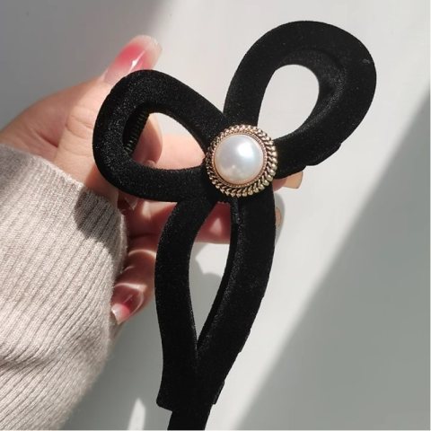 Spinka do włosów, klamra Vintage velvet czarna z perłą XL 11x6cm SP336