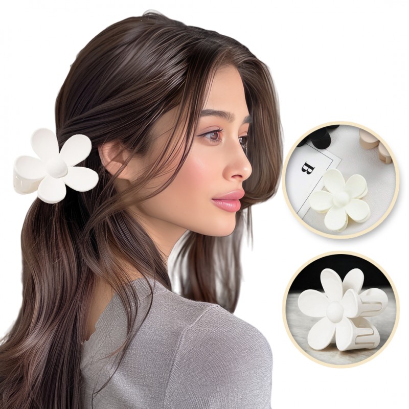 Spinka do włosów klamra XL kwiat biała 7×7,5 cm SP152B