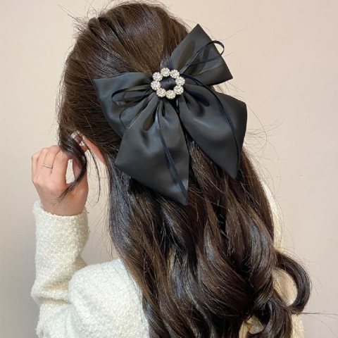 Spinka klamra do włosów Czarna Kokarda z diamencikami XL SP441CZ