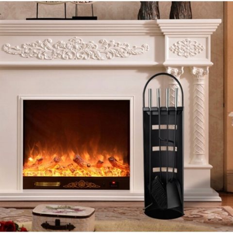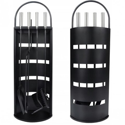 STOJAK Z AKCESORIAMI KOMINKOWYMI To stylowe i dopasowane uzupełnienie domowego kominka. Stalowa konstrukcja powoduje, że stojak jest stabilny i trwały. Klasyczna czerń będzie elegancko się prezentować z każdym wnętrzem. Poczuj zimową aurę. Usiądź wygodnie w fotelu przy kominku i rozkoszuj się ciepłem żywego ognia. Przybory ze stojaka sprawdzą się świetnie nie tylko do kominka ale również grilla, pieca itp. W skład zestawu wchodzą: – 4 przybory: zmiotka, szufelka, szczypce, pogrzebacz, – stojak, – śruby montażowe, – stojak zapakowany w pudełko kartonowe. Wymiar produktu: 66 x 22 x 10 cm Waga: 3 kg