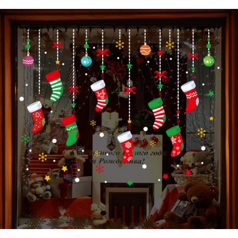 Świąteczne naklejki kolorowe na okno 2 Arkusze 30 x 45 cm NKD24