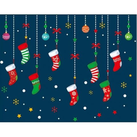 Świąteczne naklejki Boże Narodzenie Idealny akcent do podkreślenia świątecznego klimatu! W zestawie 2 arkusze z naklejkami. Wymiar arkusza z naklejkami: 30 x 45 cm Waga: 65 g