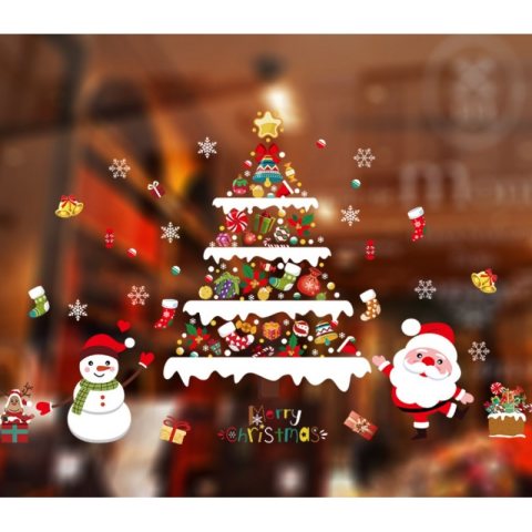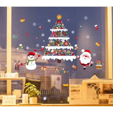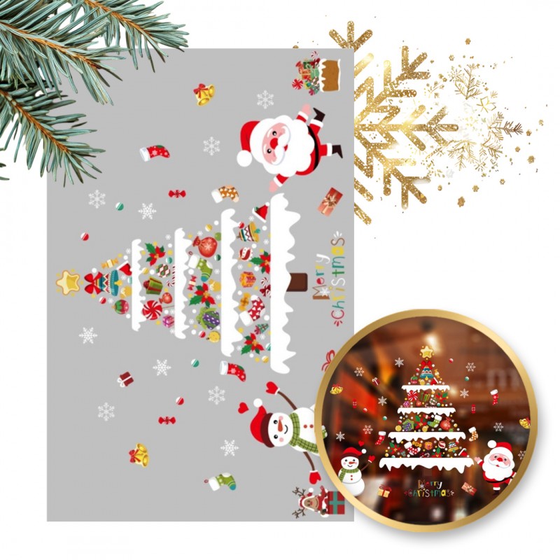 Świąteczne naklejki kolorowe na okno 2 Arkusze 90 x 30 cm NKD23