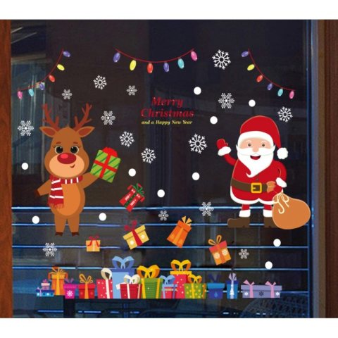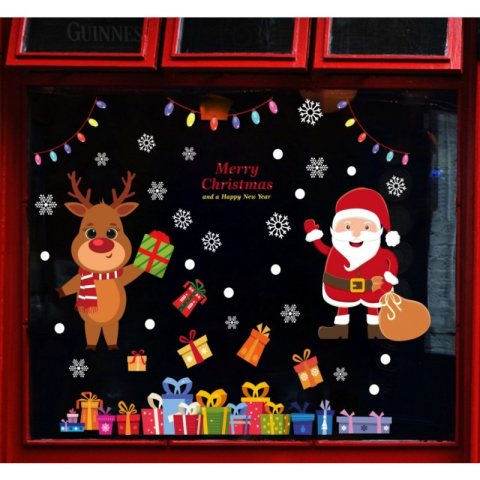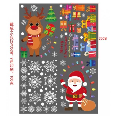 Świąteczne naklejki kolorowe na okno 4 Arkusze 25 x 35 cm NKD15