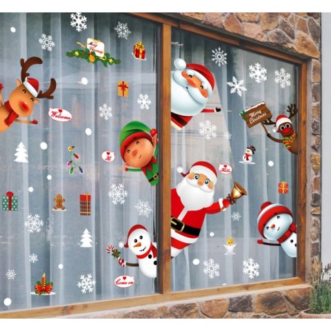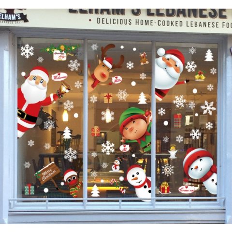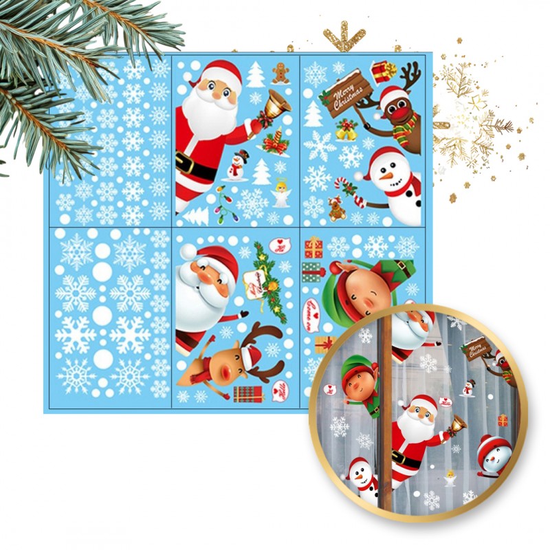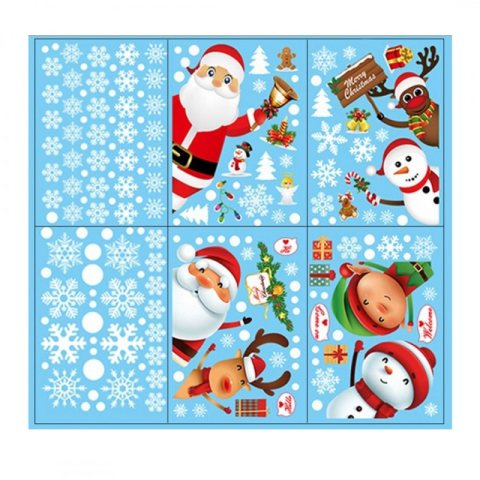 Świąteczne naklejki kolorowe na okno 6 arkuszy 25cm x 35cm NKD11
